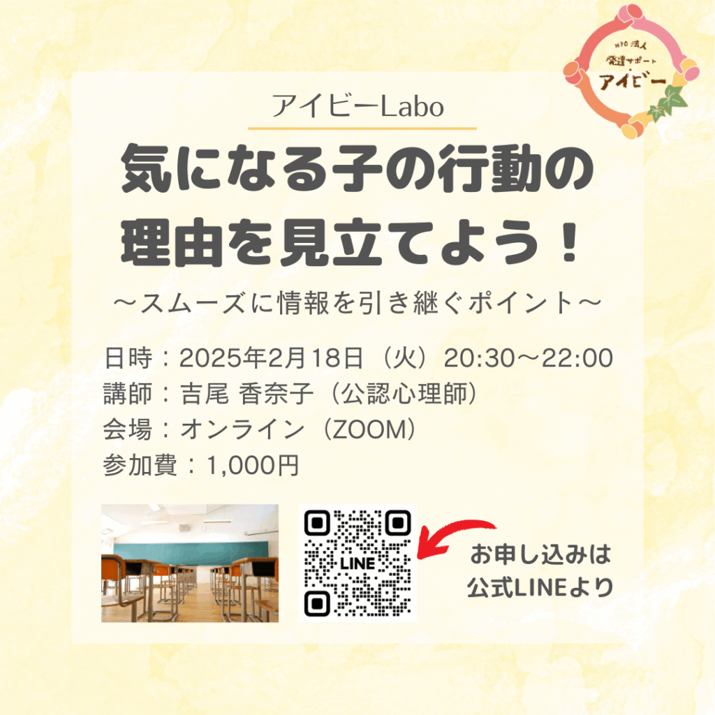 今回のアイビーLaboでは、どんな視点で子どもたちの行動の理由を見立て、どう対応していくのかということを事例を交えながらご提案させて頂きます。